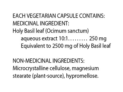 Holy Basil leaf (Ocimum sanctum) aqueous extract 10:1……. 250 mg