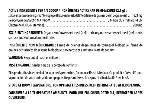 Linum usitatissimum organic / biologique (Flax seed meal, defatted/farine de graines de lin dégraissées) . . . 1523 mg