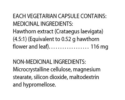 Hawthorn extract (Crataegus laevigata) (4.5:1) (Equivalent to 0.52 g hawthorn flower and leaf). . . . . . . 116 mg