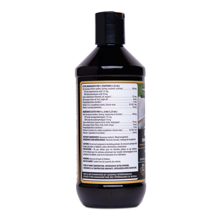 RECOMMENDED DOSE: Administer orally. Mix ¼ teaspoon per 4.5 kg (10 lb) of body weight, to a maximum of two teaspoons daily to pet’s meal. For the best results, divide the daily dose between two meals. Shake well before each use. For use in dogs and cats only. DOSE RECOMMANDÉE : Administrer par voie orale. Mélanger ¼ c. à thé par 4,5 kg (10 lb) de poids corporel, jusqu’à un maximum de deux c. à thé par jour, au repas de l’animal. Pour de meilleurs résultats, répartir la dose quotidienne entre deux repas. Bien agiter avant chaque emploi. Ce produit est uniquement destiné aux chiens et aux chats.