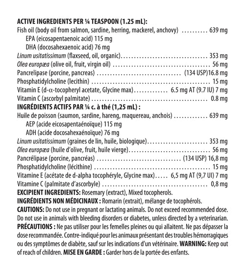 BioFATS est un mélange équilibré d’oméga provenant d'huiles de poisson, de graines de lin et d’olive qui fournit des acides gras essentiels vitaux à la santé quotidienne de la peau, de la fourrure, des muscles et des articulations. Le ratio précis d’acides gras oméga-3, 6 et 9 favorise les procédés métaboliques et hormonaux tout en régularisant les réactions inflammatoires et histaminiques.
