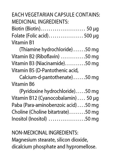 Les vitamines B favorisent, entre autres, le métabolisme, la conversion des aliments en énergie et le maintien de la santé des cellules nerveuses et des globules sanguins du corps. Toutefois, les vitamines B sont hydrosolubles donc, elles ne sont pas stockées en grandes quantités, et l’excédent est purgé. Vous pensez peut-être devoir réguler votre apport? Complexe vitaminique B 50 de Flora contient un mélange de vitamines B (dont la thiamine (B1), la B6, la B12, entre autres) afin de vous aider à maintenir des niveaux sains de vitamines B.