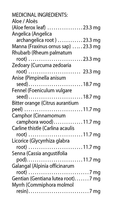 Mélange de plantes sèches pour préparation à la maison en fonction d’une ancienne recette suédoise. NPN 80038634Allégation NPN : Contient des plantes d’usage traditionnel en phytothérapie comme toniques digestifs pour soulager les symptômes comme la dyspepsie et la constipation.