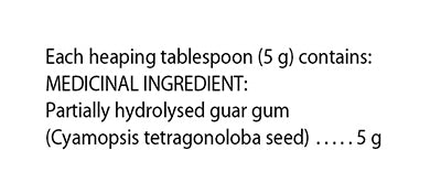 CAUTIONS: Consult a health care practitioner prior to use if: 1) you have diabetes mellitus in which blood sugar is difficult to regulate 2) you are taking medications which inhibit peristaltic movement (e.g. opioids, loperamide) 3) you have symptoms such as abdominal pain, nausea, vomiting or fever (as these could be signs of abnormal constrictions of the gastrointestinal tract, disease of the esophagus and / or the superior opening of the stomach (cardia), potential or existing intestinal blockage, paralysis or the intestine, megacolon, fecal impaction, inflamed bowel or appendicitis).