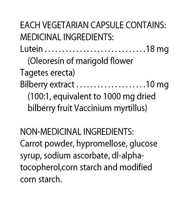 Bilberry extract. . . . . . . . . . . . . . . 10 mg (100:1, equivalent to 1000 mg dried bilberry fruit Vaccinium myrtillus)